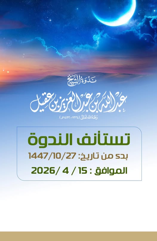توقف ندوةالشيخ عبدالله العقيل رحمه الله الاربعاء13-10-الاربعاء20-10-تستأنف الاربعاء27-10